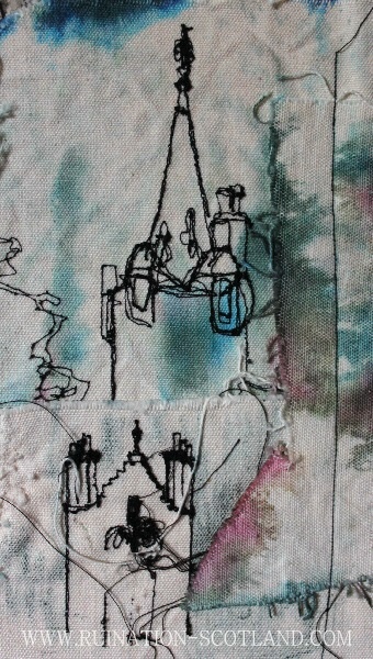 Stitching with ink on canvas