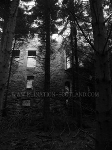 oppressive atmosphere as I became disorientated by the criss-crossing paths and tracks. The dark trees seemed to bear down on me as I turned this way and that, taking a few wrong-turns but eventually discerning a path leading to an area of light amidst the darkness. Following this, I emerged into a small clearing beneath a dull sky, fir branches parting to reveal the truncated form of Cavers House before me, its tall walls closely bordered by sentinels of pine. The clearing had the air of a place utterly forgotten and I knew then that my journey had indeed been worthwhile.